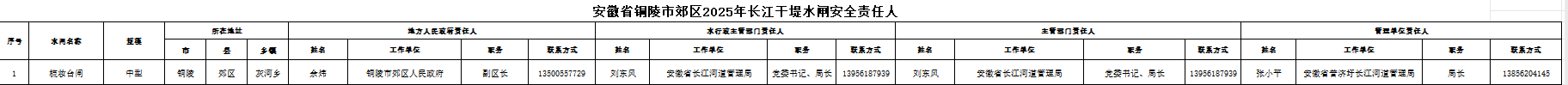 安徽省铜陵市郊区2025年长江干堤水闸安全责任人