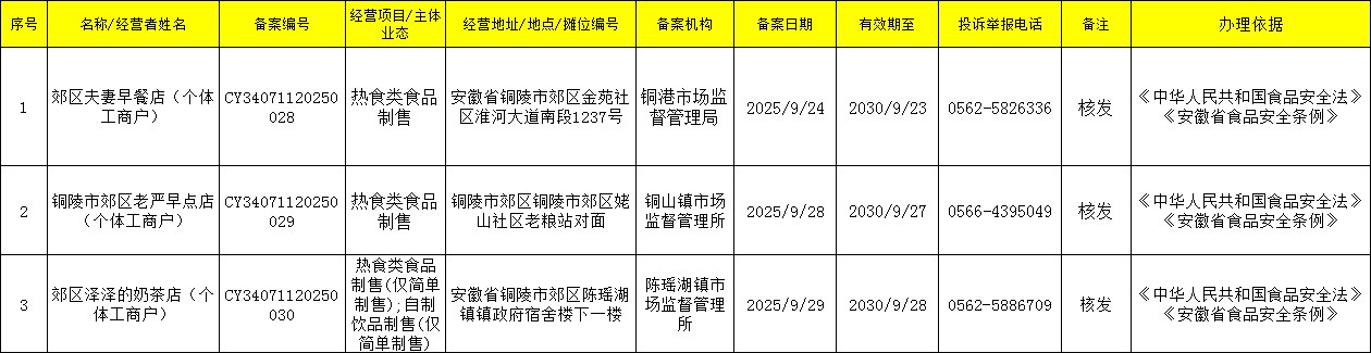 2025年9月第四周小餐饮备案发放情况
