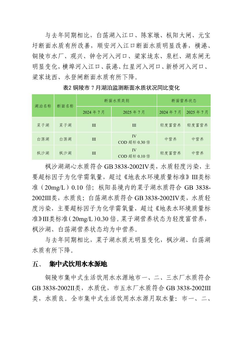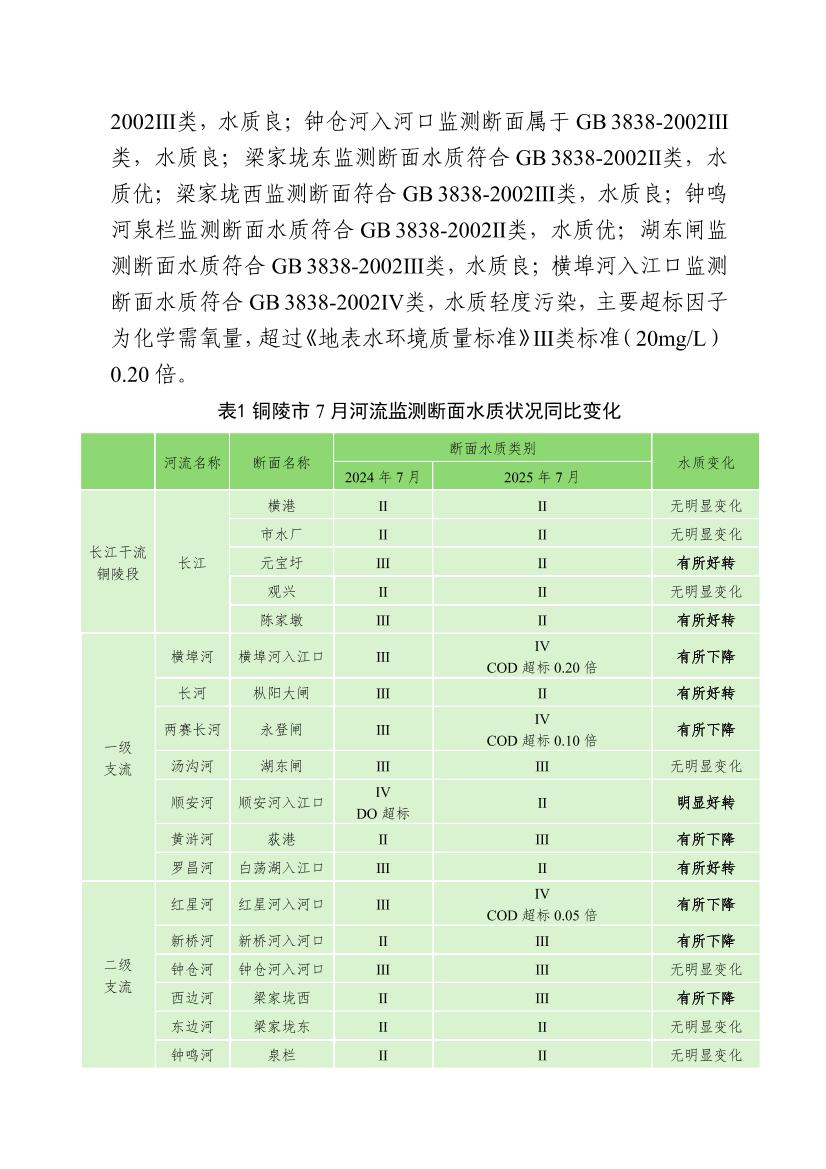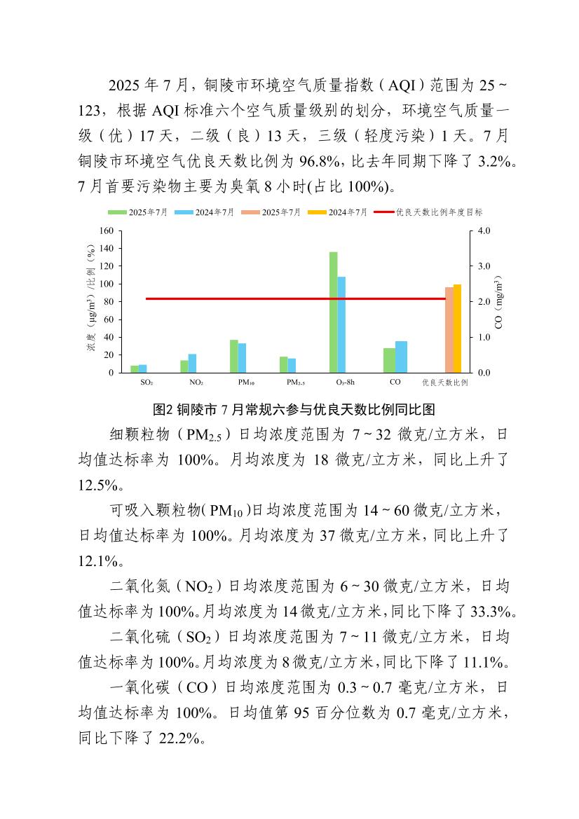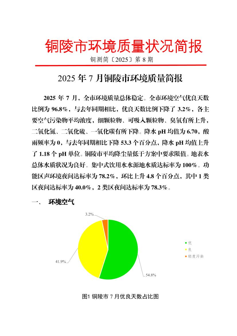 2025年7月份铜陵市生态环境质量月报