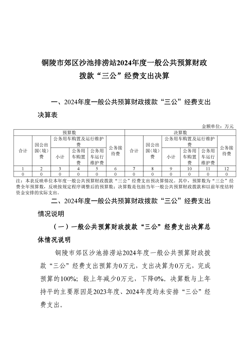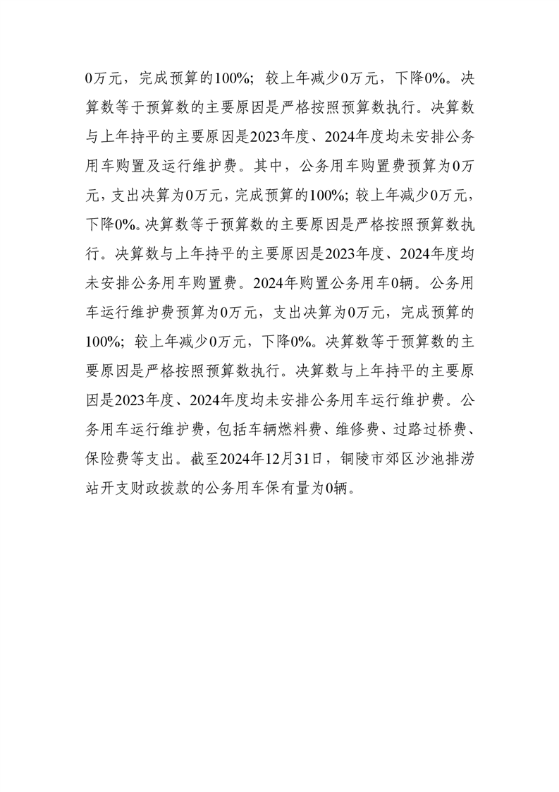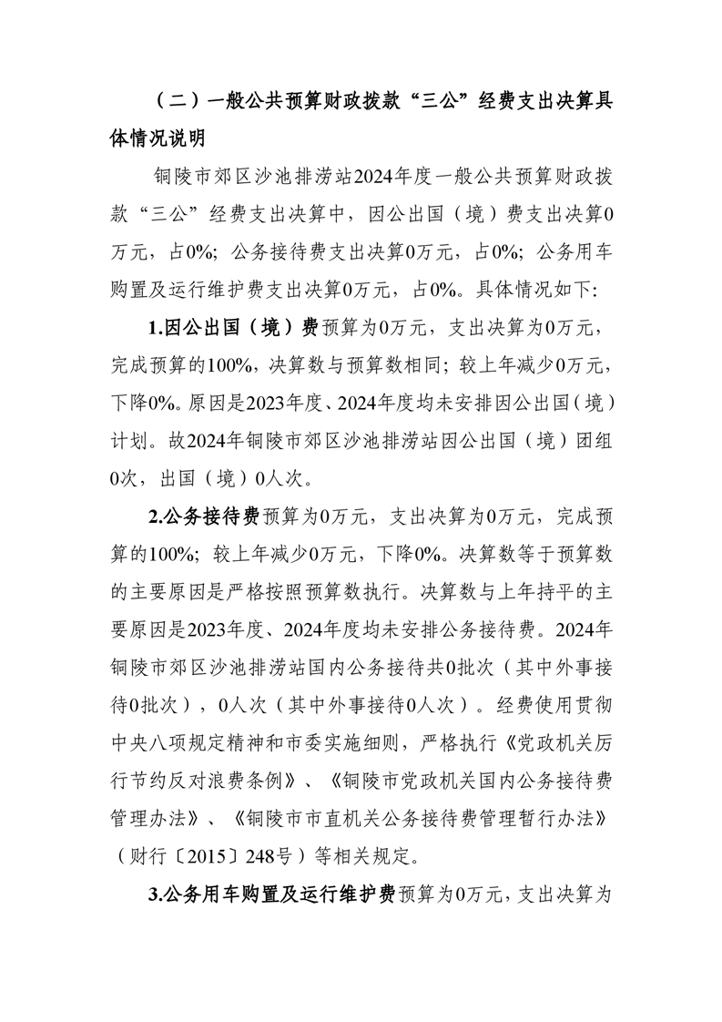 铜陵市郊区沙池排涝站2024年三公经费决算