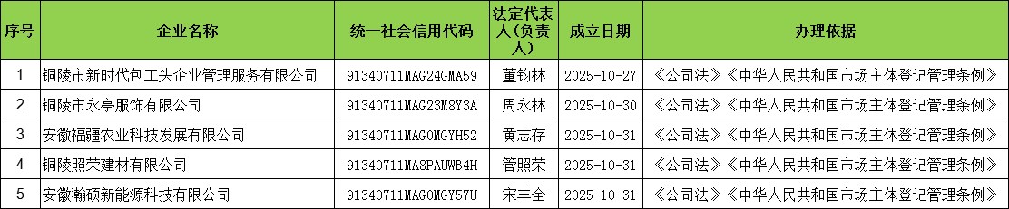 2025年10月第四周营业执照发放情况