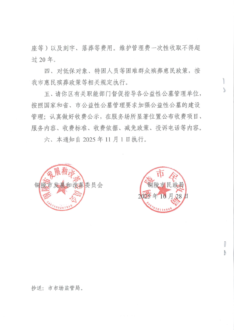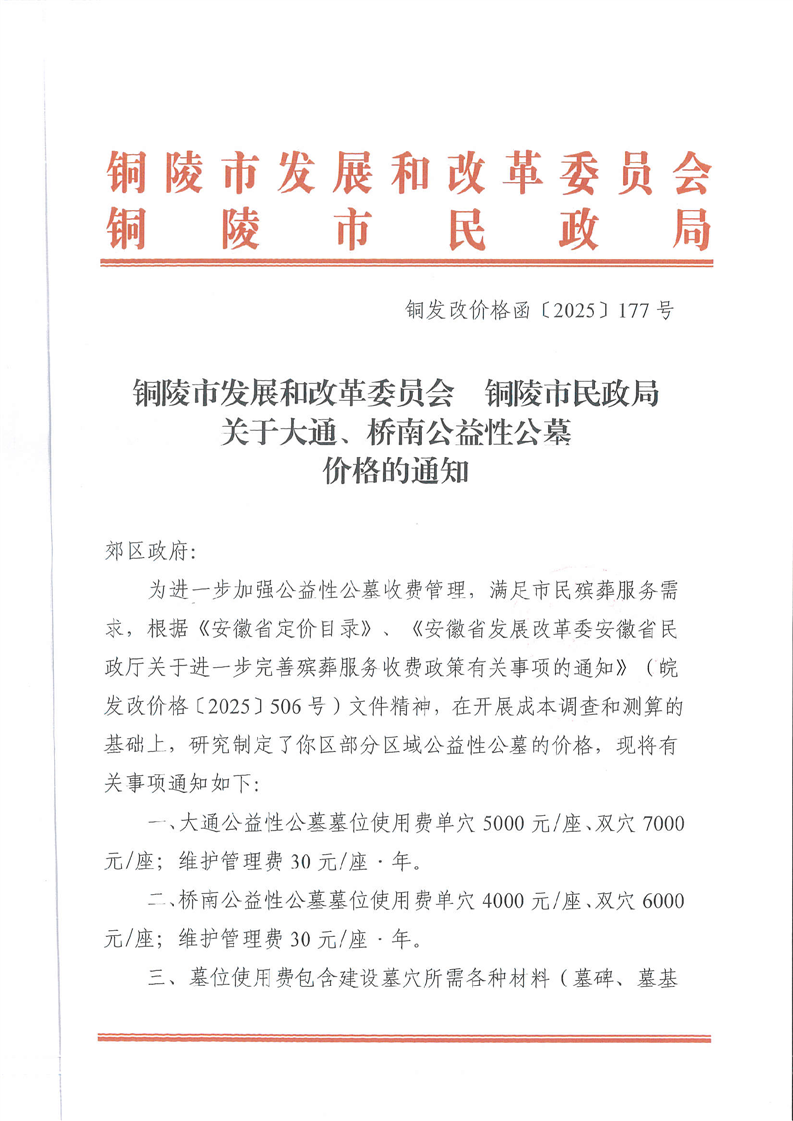 【主动回应】铜陵市发展和改革委员会铜陵市民政局关于大通、桥南公益性公墓价格的通知