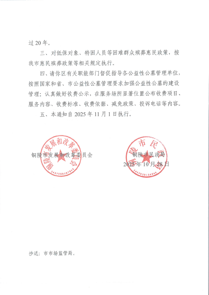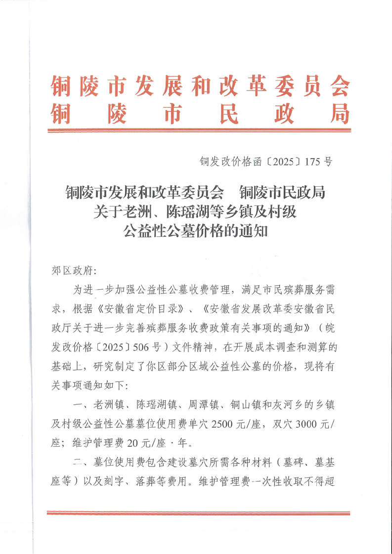 【主动回应】铜陵市发展和改革委员会铜陵市民政局关于老洲、陈瑶湖等乡镇及村级公益性公墓价格的通知
