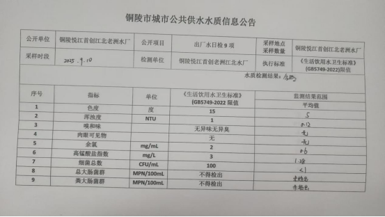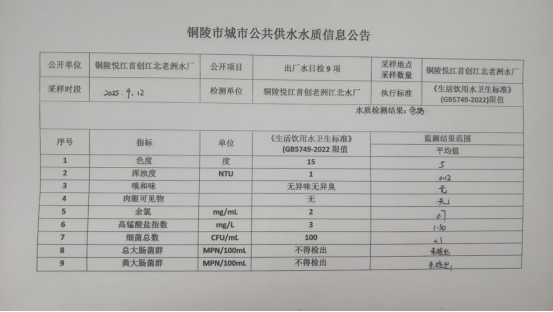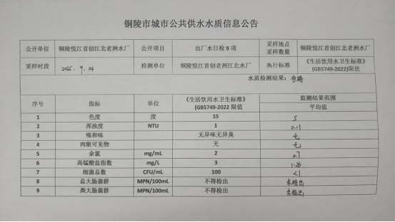 2025.9.15悦江首创老洲江北水厂9.8-9.14“9项”日检测报表