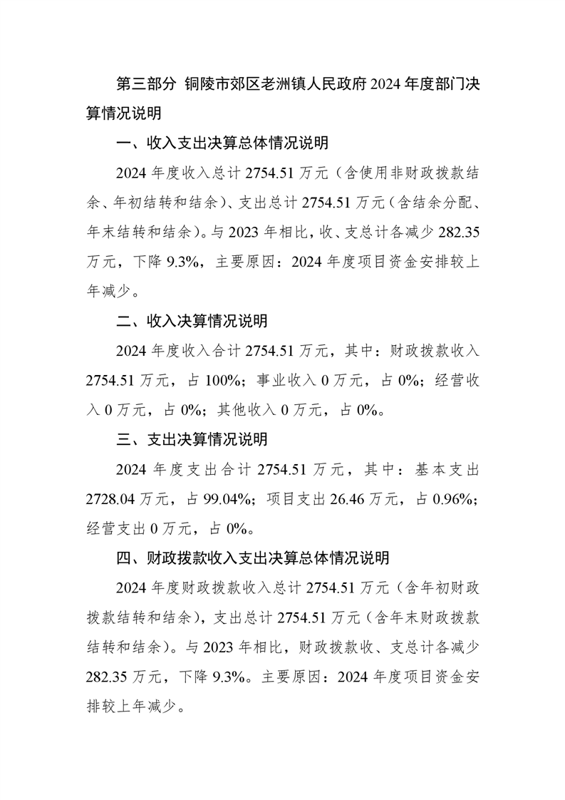 铜陵市郊区老洲镇人民政府2024年度部门决算