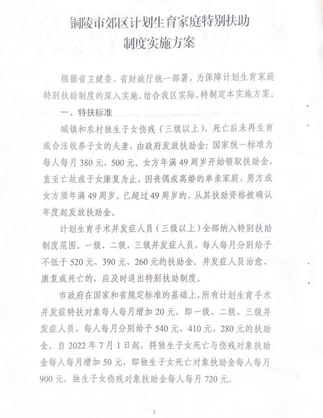【政策与标准】关于印发《铜陵市郊区计划生育家庭特别扶助制度实施方案》的通知