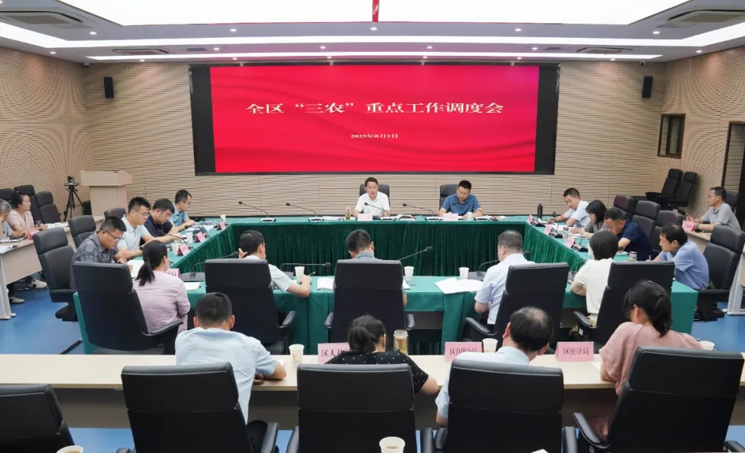 8月1日上午,全区“三农”重点工作调度会在智慧郊区指挥中心举行,区委副书记李源主持会议并讲话。