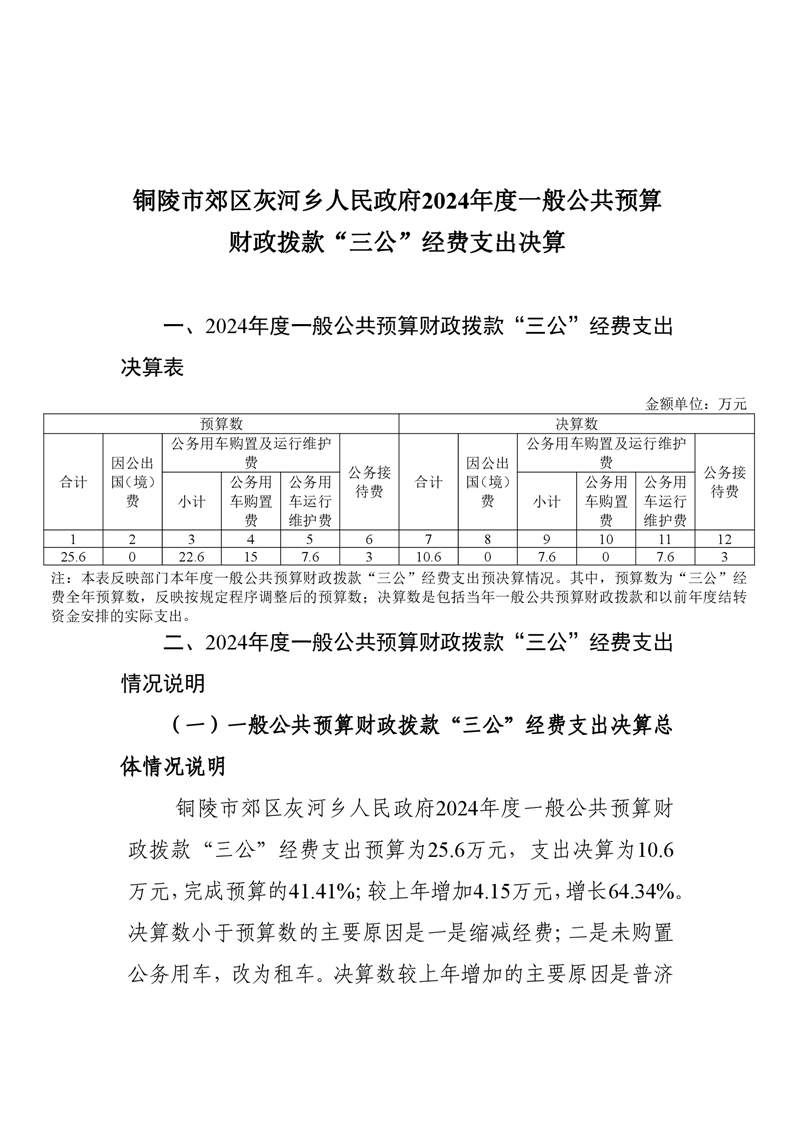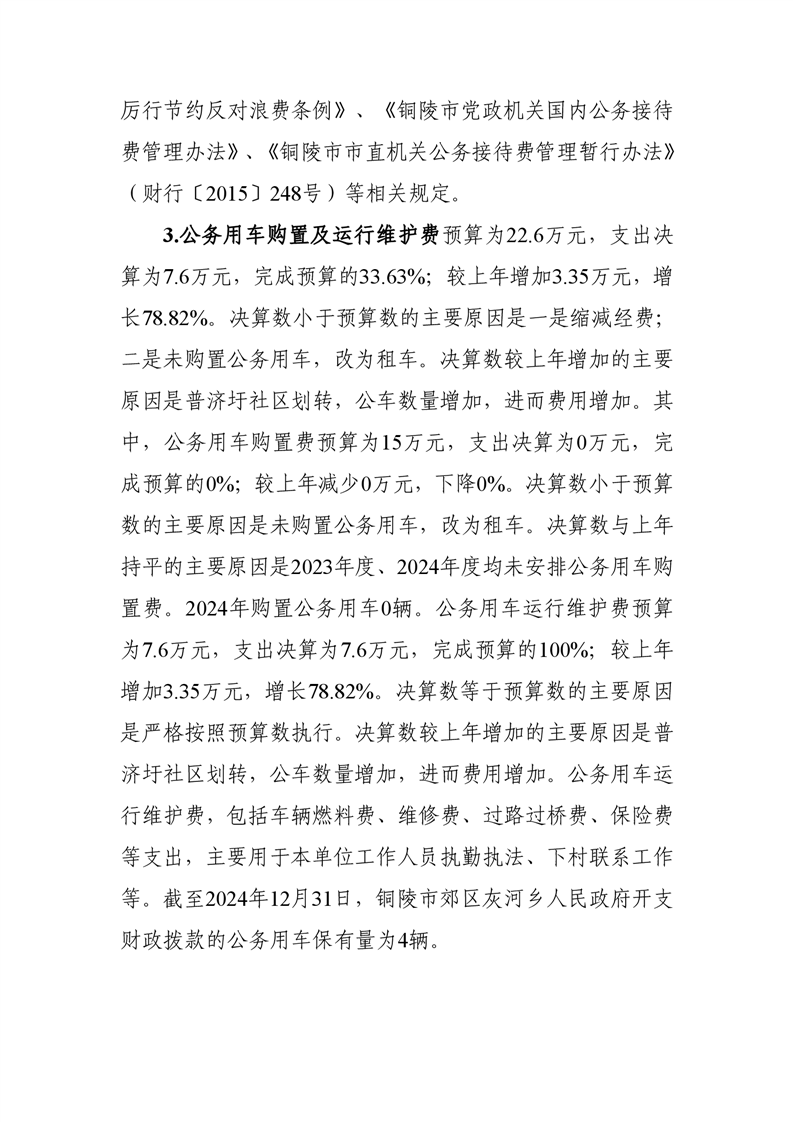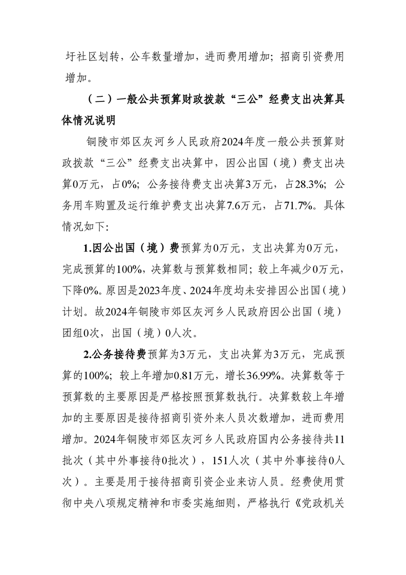铜陵市郊区灰河乡人民政府2024年度一般公共预算财政拨款“三公”经费支出决算