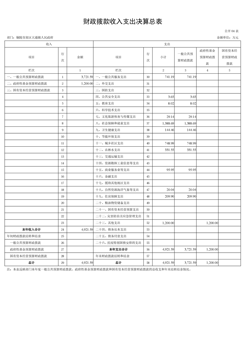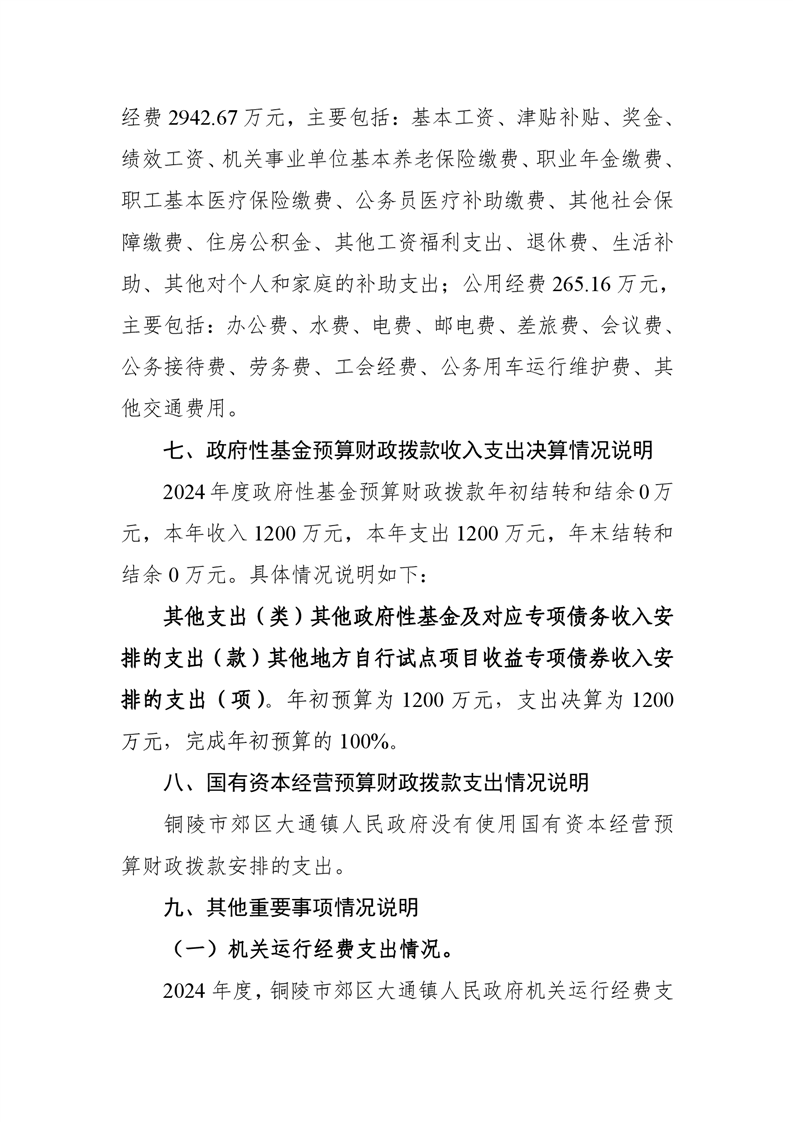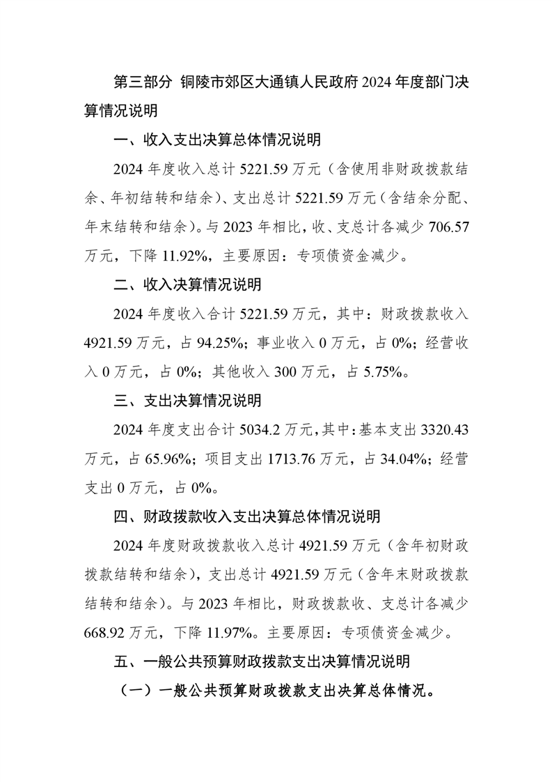 铜陵市郊区大通镇人民政府2024年度部门决算
