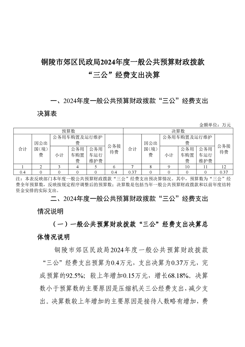 铜陵市郊区民政局2024年度一般公共预算财政拨款“三公”经费支出决算说明