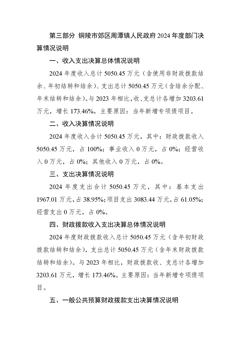 铜陵市郊区周潭镇人民政府2024年度部门决算