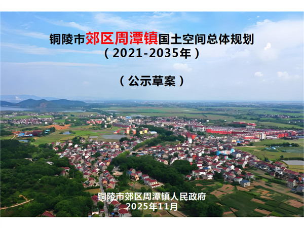为贯彻《中共中央国务院关于建立国土空间规划体系并监督实施的若干意见》(中发〔2019](18号) 文件精神,强化国土空间规划在国土空间开发保护中的战略引领和刚性管控作用,指导城乡各类开发建设活动、开展国土空间资源保护利用和修复、制定空间发展政策、实施国土空间规划管理,推动形成人与自然和谐共生的国土空间格局,并且进一步落实好《铜陵市国土空间总体规划(2021-2035年)》对周潭镇的规划传导要求,更加科学深入细致的对周潭镇全域范围内国土空间开发保护利用作出总体安排和综合部署,有效指导和管控好周潭镇未来的空间格局,依据相关法律法规、规范标准、政策文件,特编制《铜陵市郊区周潭镇国土空间总体规划(2021-2035年)》(以下简称《规划》)。《规划》前期开展了多轮讨论和征求村、镇、区相关部门意见,经修改完善后,形成了该规划方案的评审稿,2025年11月13日通过了专家评审会,并按照安徽省乡镇国土空间规划编制指南(试行)》进行了修改完善。