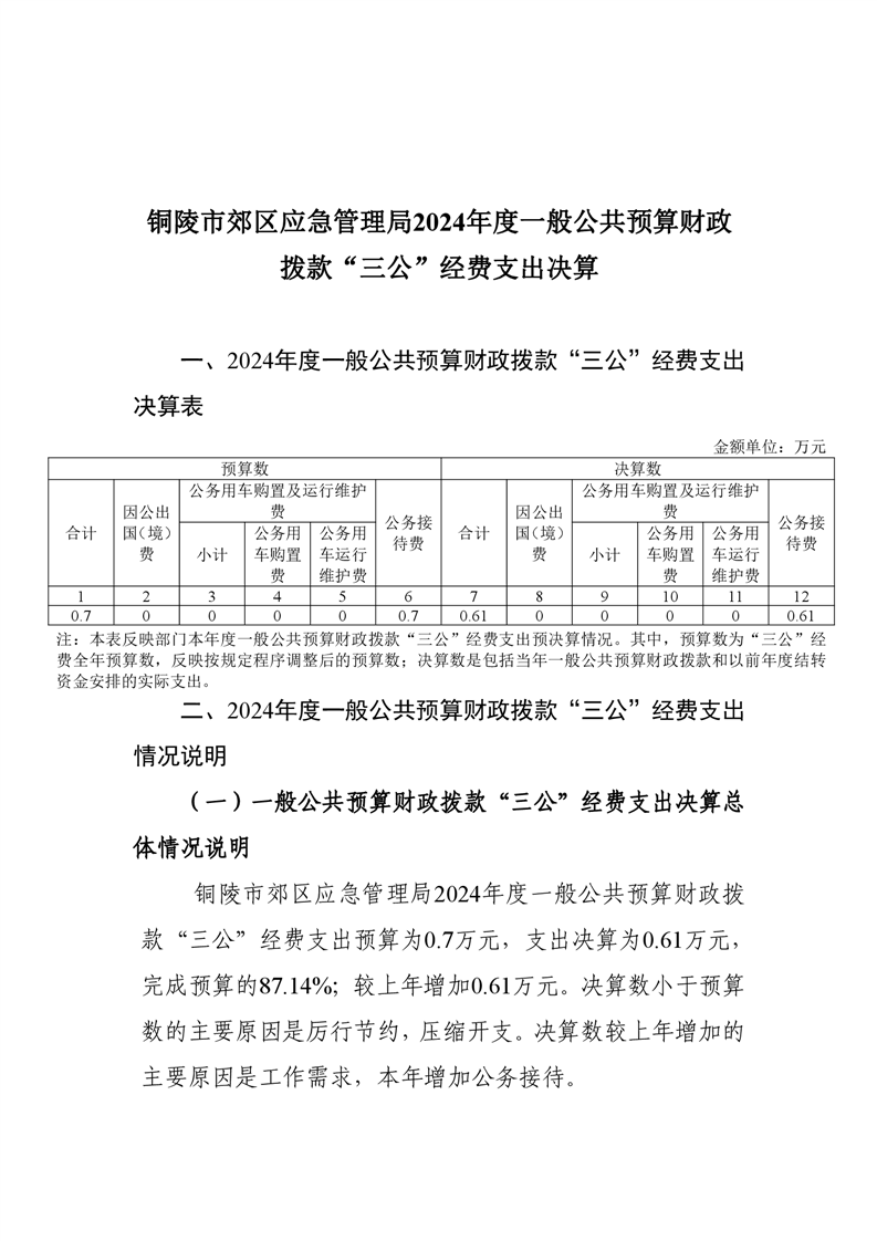 铜陵市郊区应急管理局2024年度一般公共预算财政拨款“三公”经费支出决算