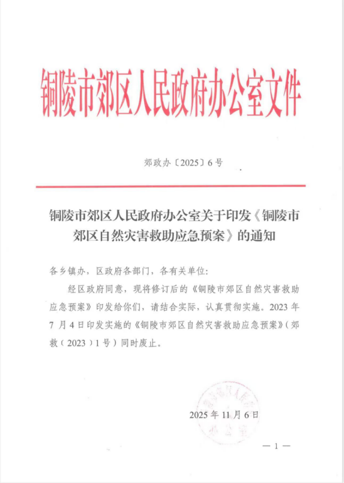 铜陵市郊区人民政府办公室 2025年11月6日印发