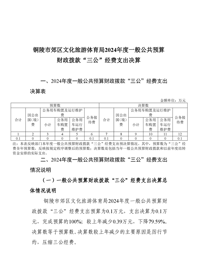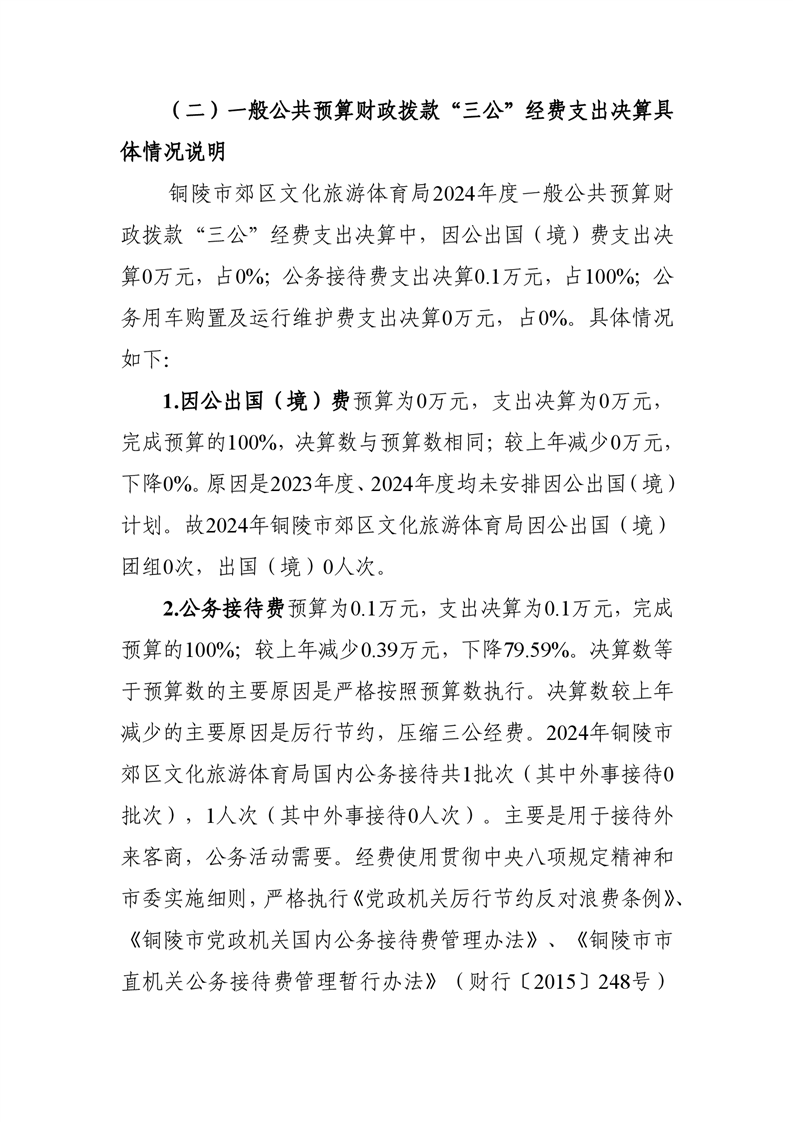 铜陵市郊区文化旅游体育局2024年一般公共预算“三公”经费决算
