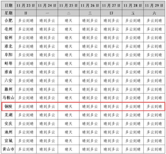 今天下午,晴到多云, 今天夜里,晴天, 明天白天,晴天。