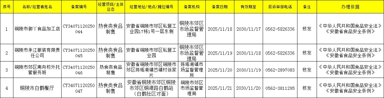 2025年11月第三周小餐饮备案发放情况