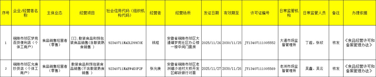附件:2025年11月第四周食品经营许可证发布情况.xlsx【10.25 KB】