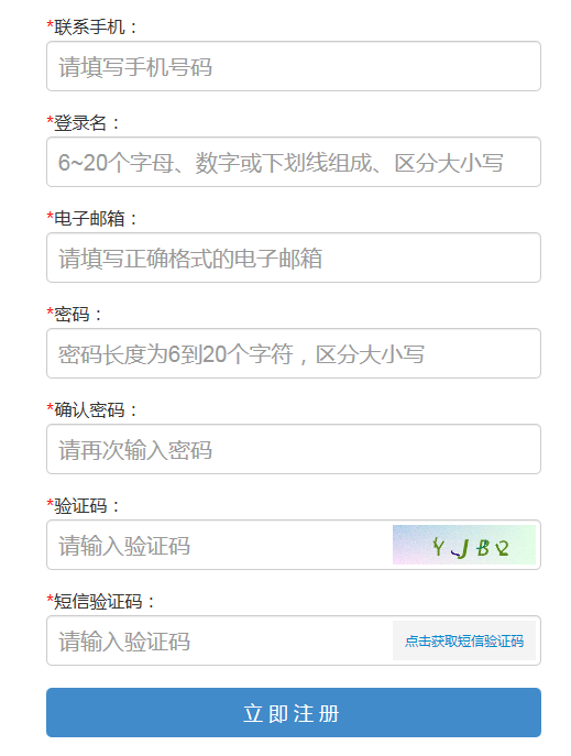 按照提示填写注册表单上的全部内容,点击【立即注册】按钮,完成注册操作,如图2.1.1。