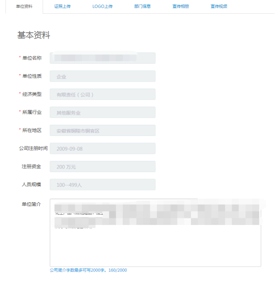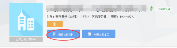 4.登录账号以后,点击单位LOGO下方“编辑公司资料”,*为必填项,编辑完成后点击下方保存。