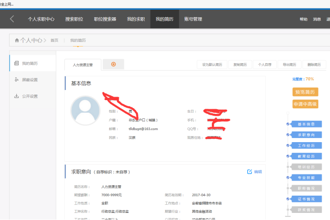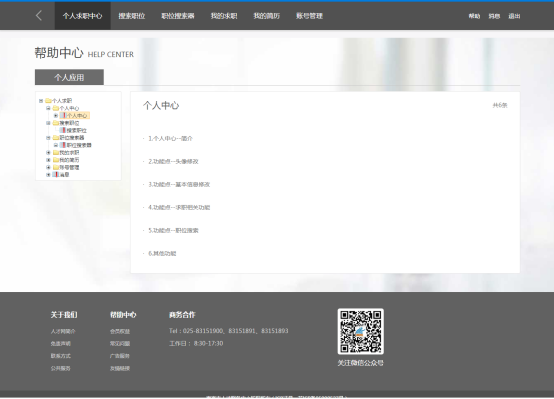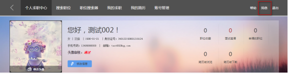 个人登录成功后,可以进入到个人中心,进行职位搜索、简历管理、应聘管理等操作。
