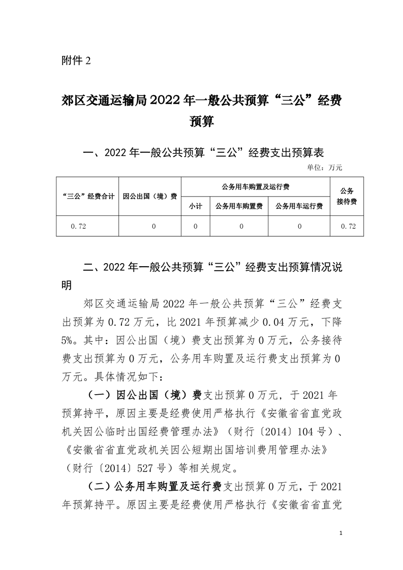 郊区交通运输局2022年三公经费预算