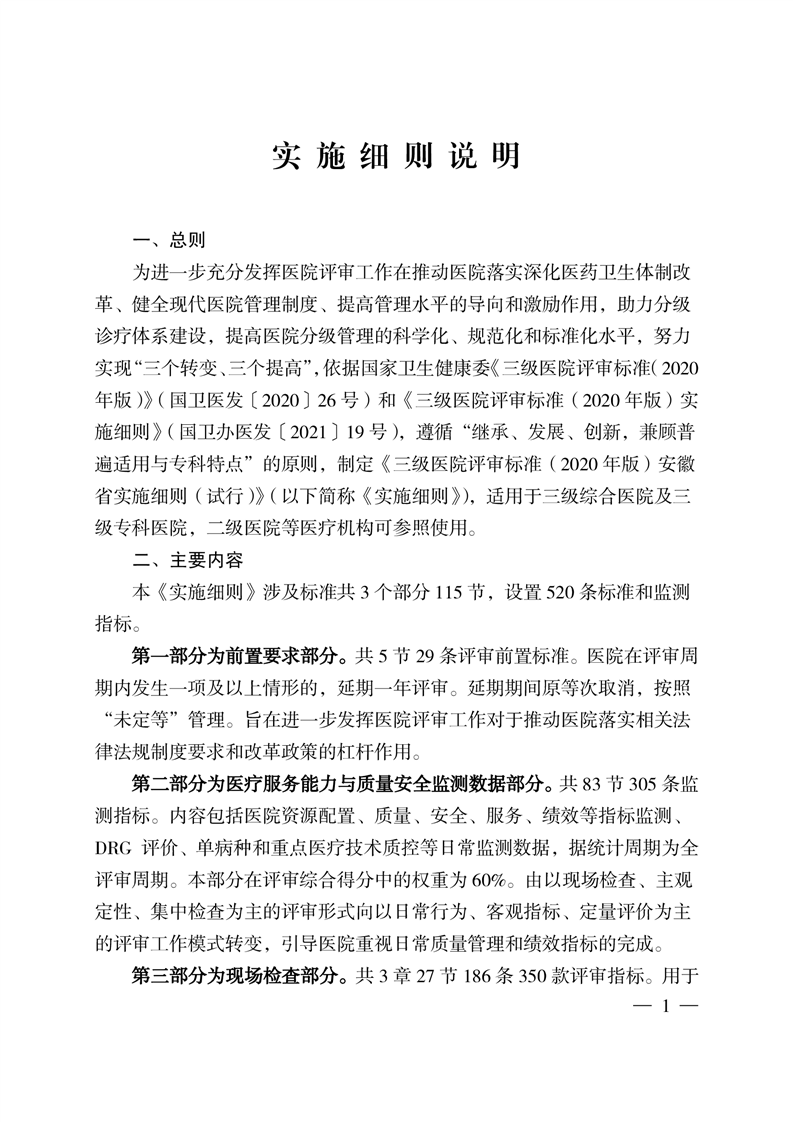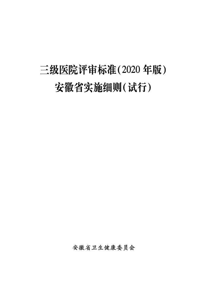 【地方政策文件】《关于印发三级医院评审标准(2020年版)安徽省实施细则(试行)的通知》(皖卫发〔2022〕1号)