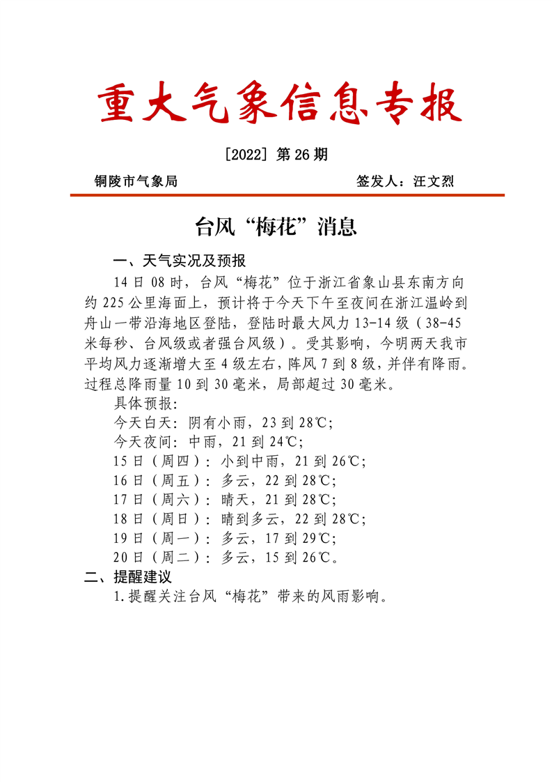 重大气象信息专报20220914