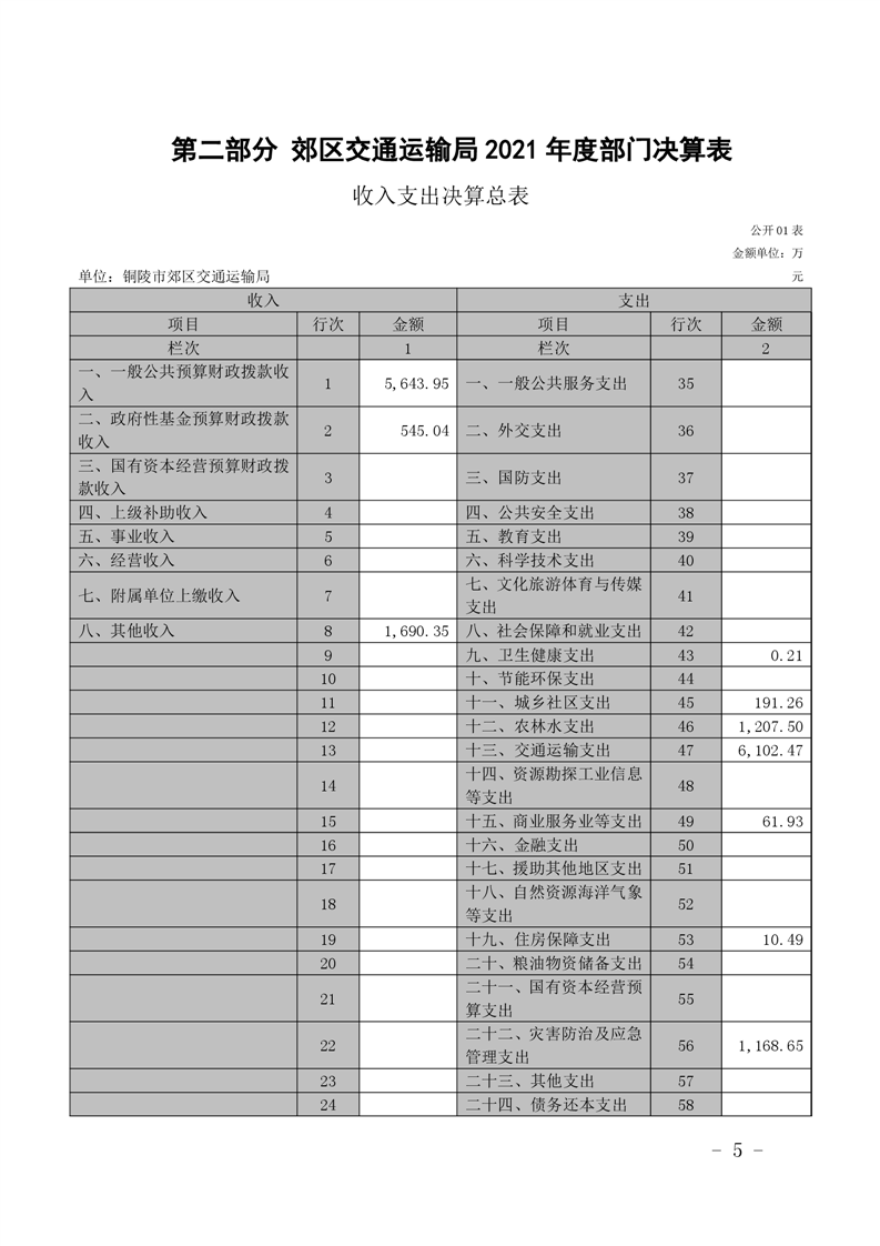 铜陵市郊区交通运输局2021年度部门决算