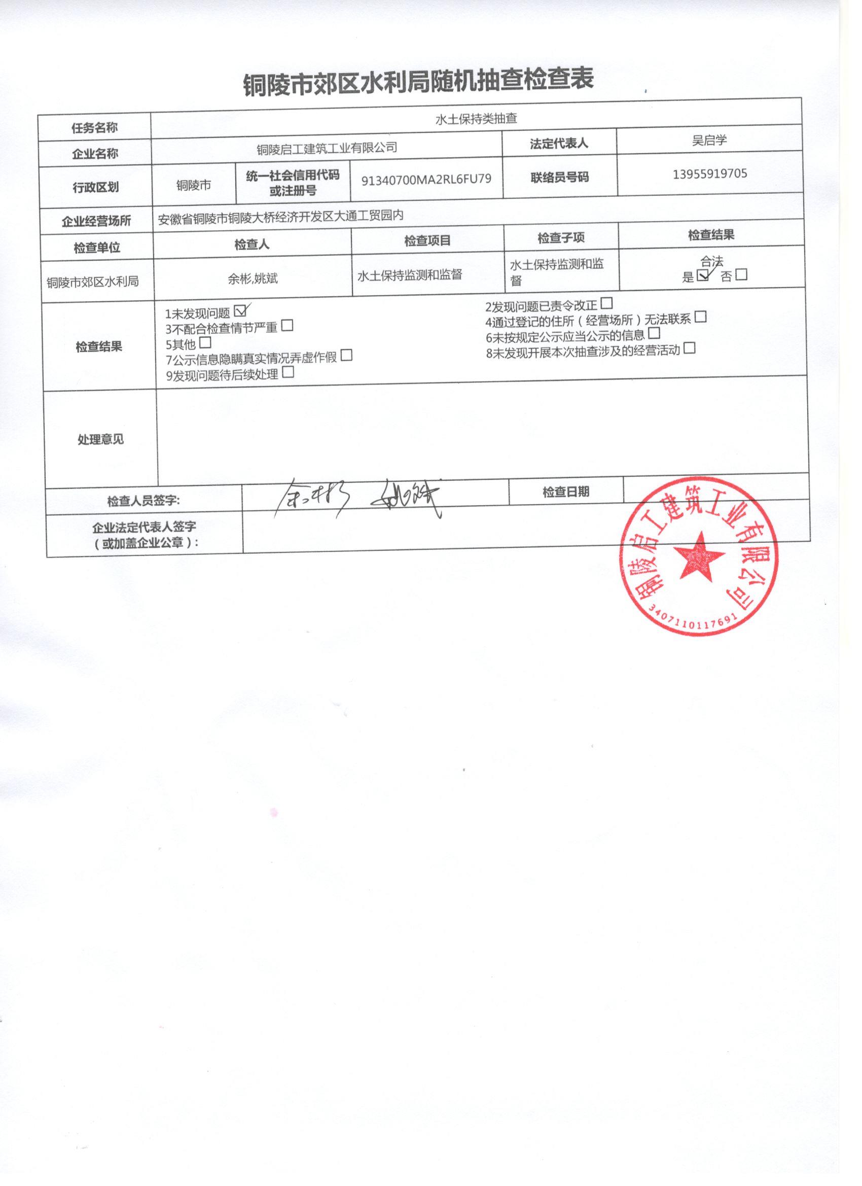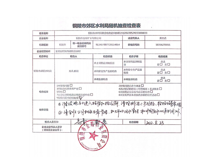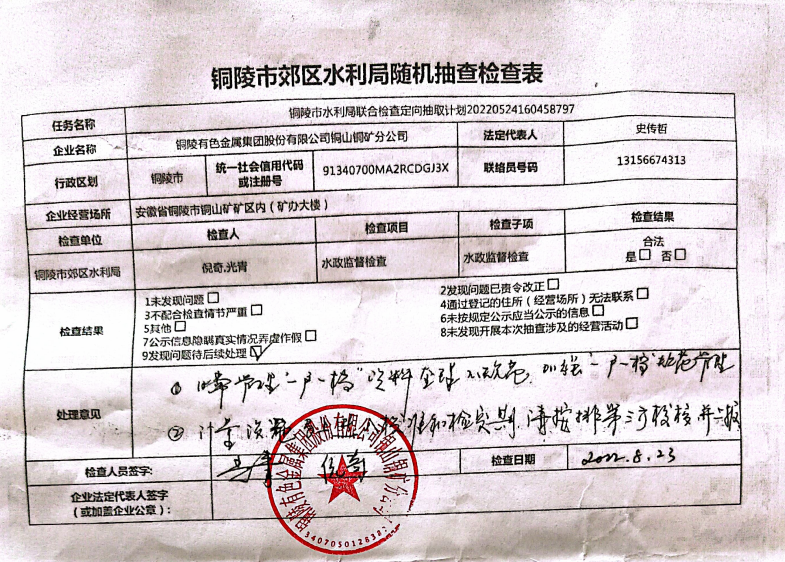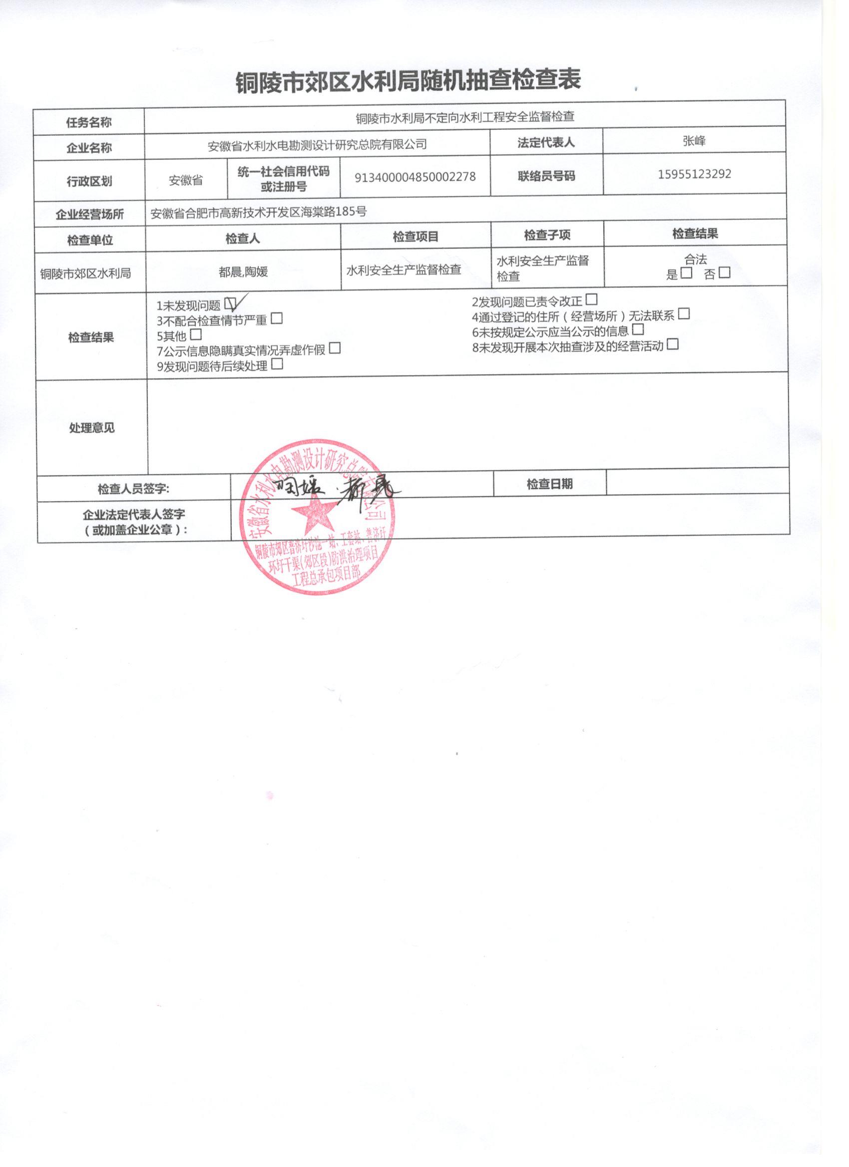 铜陵市郊区水利局2022年“双随机、一公开”随机抽查检查表