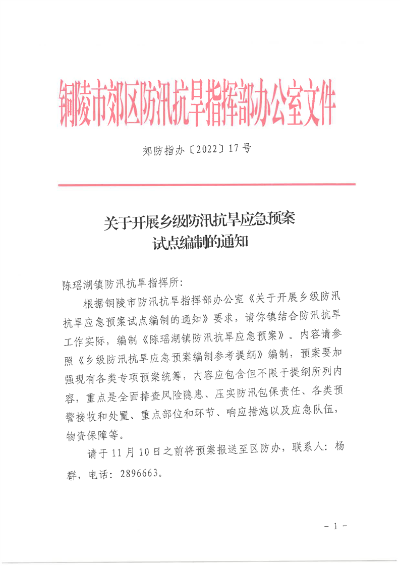 关于开展乡级防汛抗旱应急预案试点编制的通知