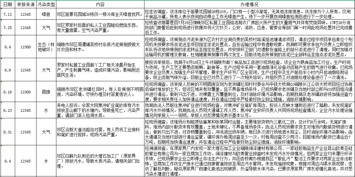 郊区生态环境分局2022年三季度群众投诉举报问题登记表