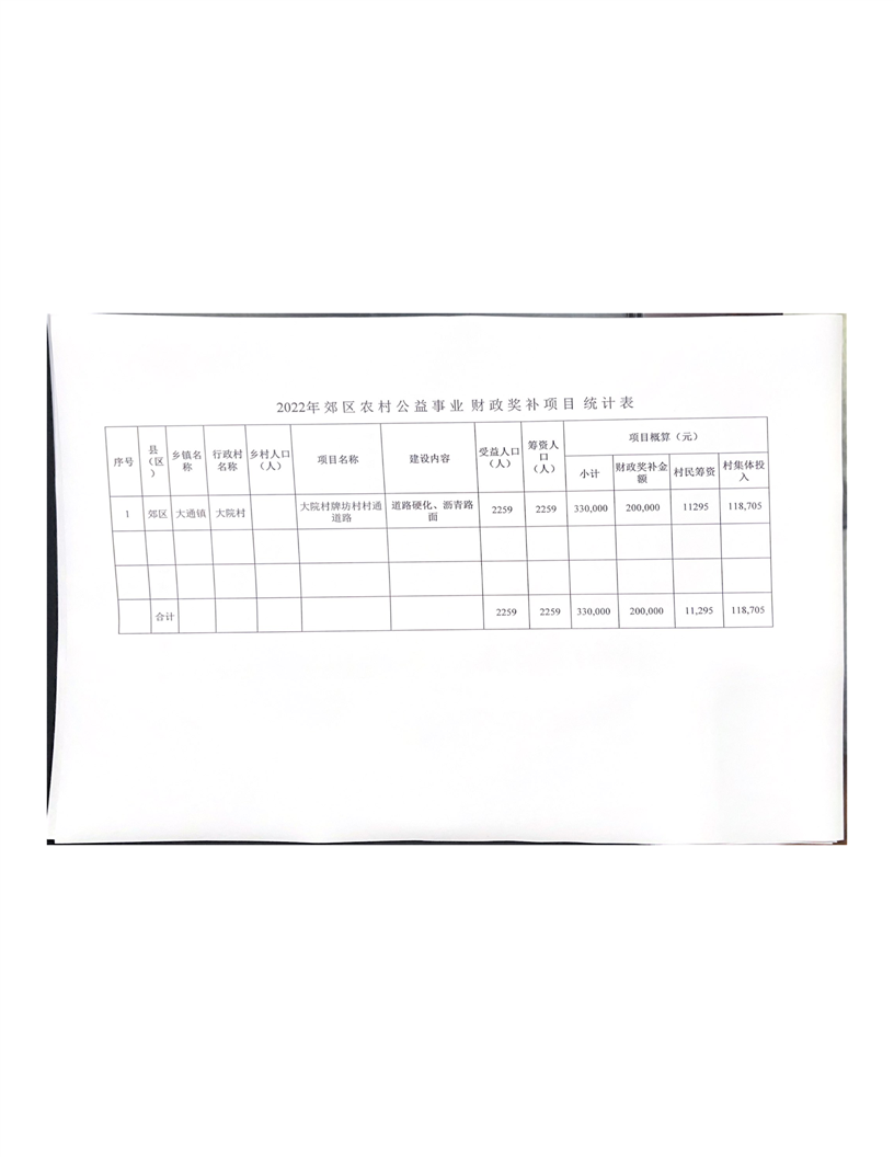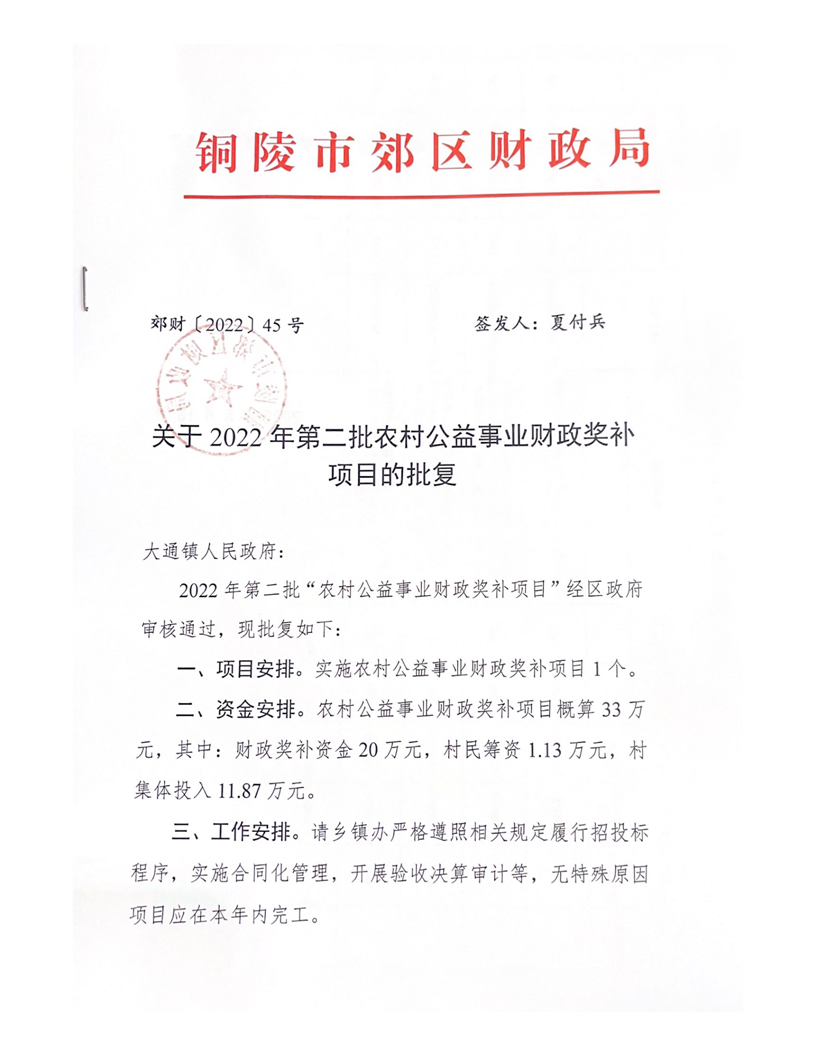 关于2022年第二批农村公益事业财政奖补项目内容变更的批复(大通镇)