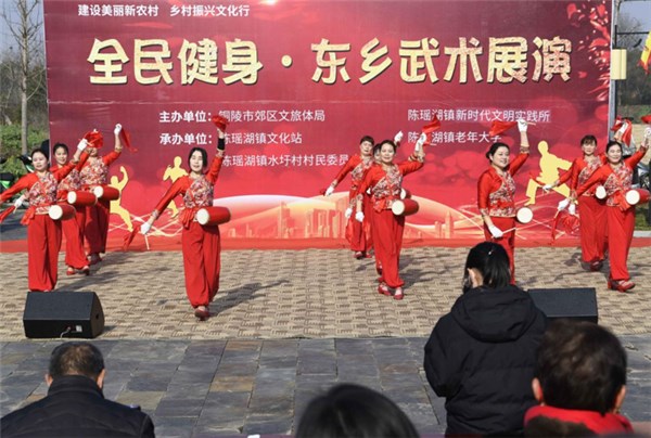 坚持“党建引领”核心不动摇,深入了解群众民生需求,积极争取各类民生项目工程。印发各类民生工程宣传手册,宣传民生工程政策,公开公示民生工程资金投入和进展情况,接受群众监督,线上线下同频共振,动员广大群众积极参与、支持民生工程高质量实施,提高群众的知晓率和满意度。位于铜陵市郊区陈瑶湖镇水圩村的文化广场,正成为村民们的“打卡点”,每天村民前往练习武术、跳舞、运动、休憩。“每天晚饭后大家都要到这儿遛遛,跳舞、打球的人都有,还挺热闹的。”村民谢大爷笑着说。