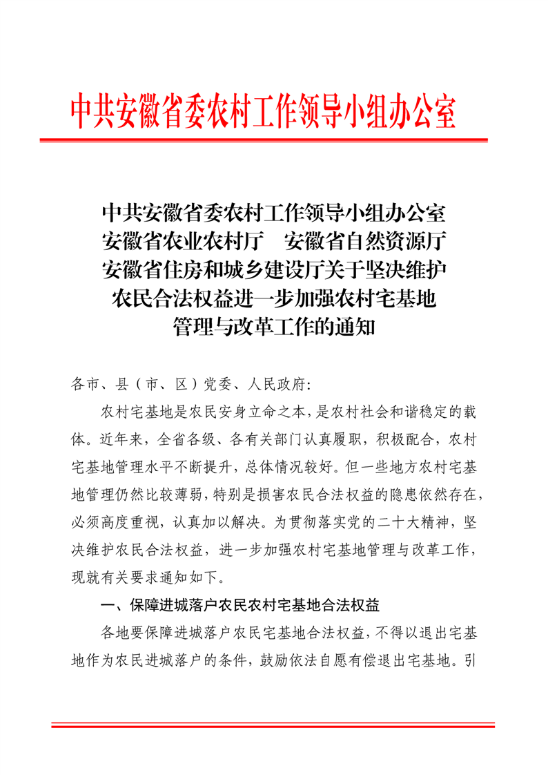 关于坚决维护农民合法权益进一步加强农村宅基地管理与改革工作的通知