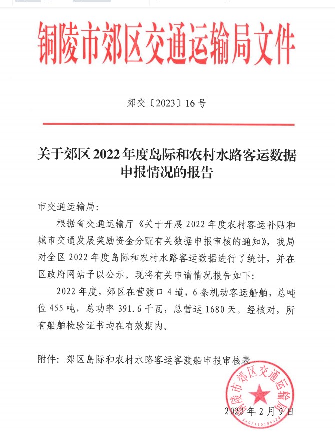 关于郊区2022年度岛际和农村水路客运数据申报情况的报告