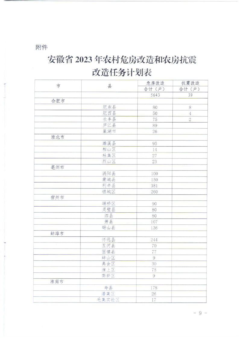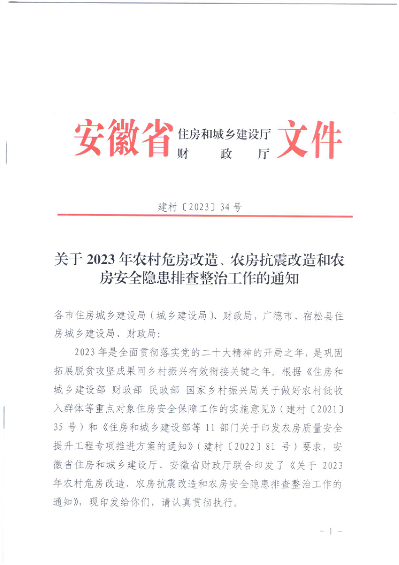 关于2023年农村危房改造、农房抗震改造和农房安全隐患排查整治工作的通知