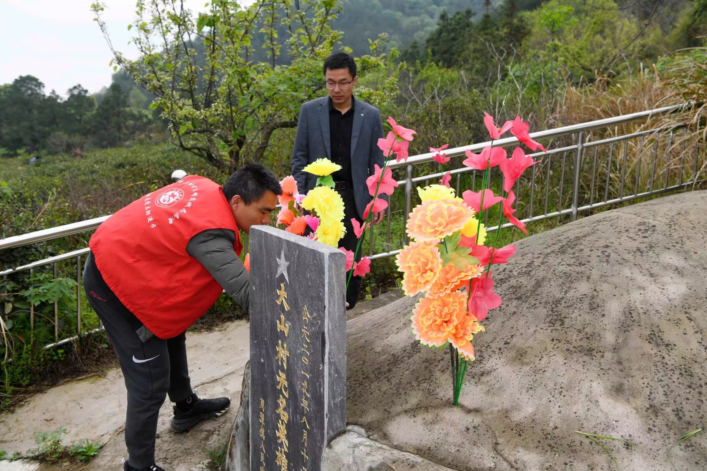 4月5日,铜陵市郊区周潭镇大山村党支部开展“缅怀革命先烈、赓续红色基因"清明祭扫烈士墓主题教育活动。 当日,在大山村新四军无名烈士墓前,大山村两委班子成员敬献了鲜花,全体鞠躬默哀,集体瞻仰在“皖南事变”后撤退至小鼓楼遭遇国民党广西军战斗中牺牲的新四军烈士墓碑,追忆革命先烈丰功伟绩,寄托无限哀思,传承红色基因,弘扬英烈精神。左文摄