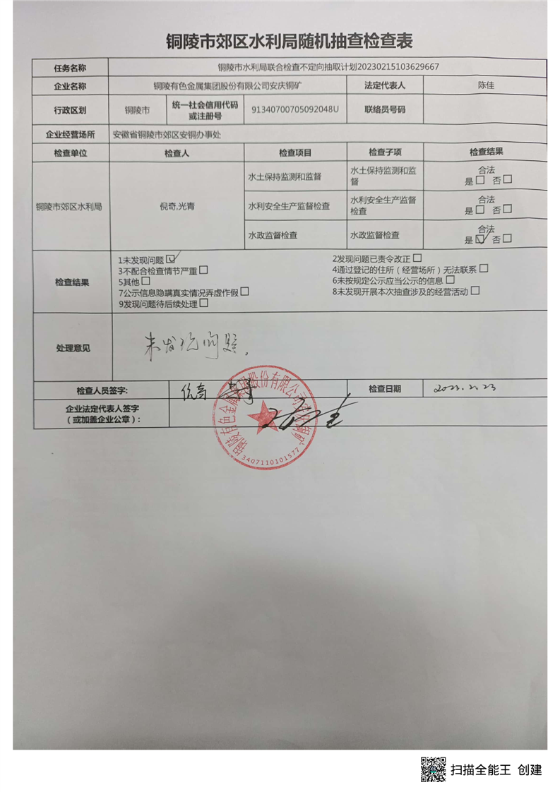 铜陵市郊区水利局“双随机、一公开”安铜办随机抽查表