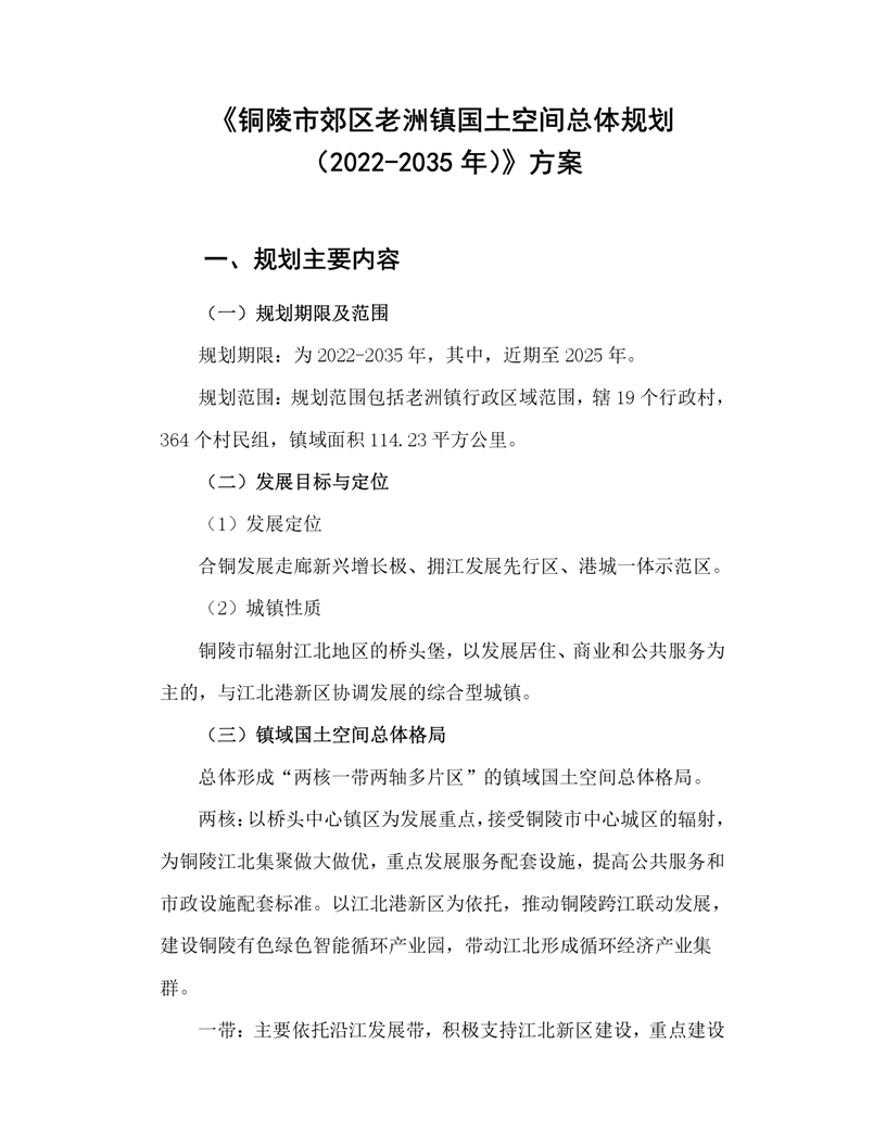 《铜陵市郊区老洲镇国土空间总体规划(2022-2035 年)》方案