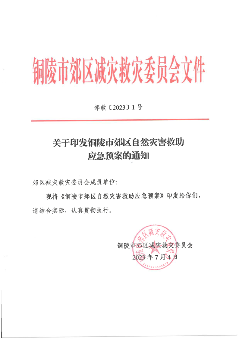 铜陵市郊区自然灾害救助应急预案
