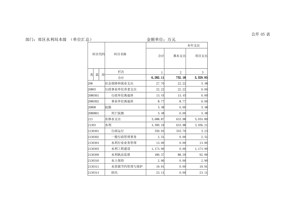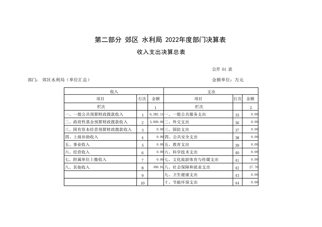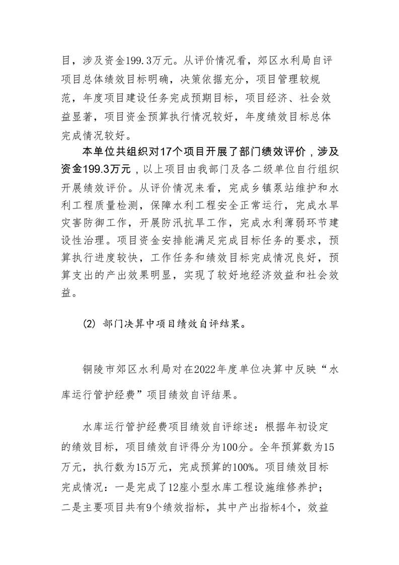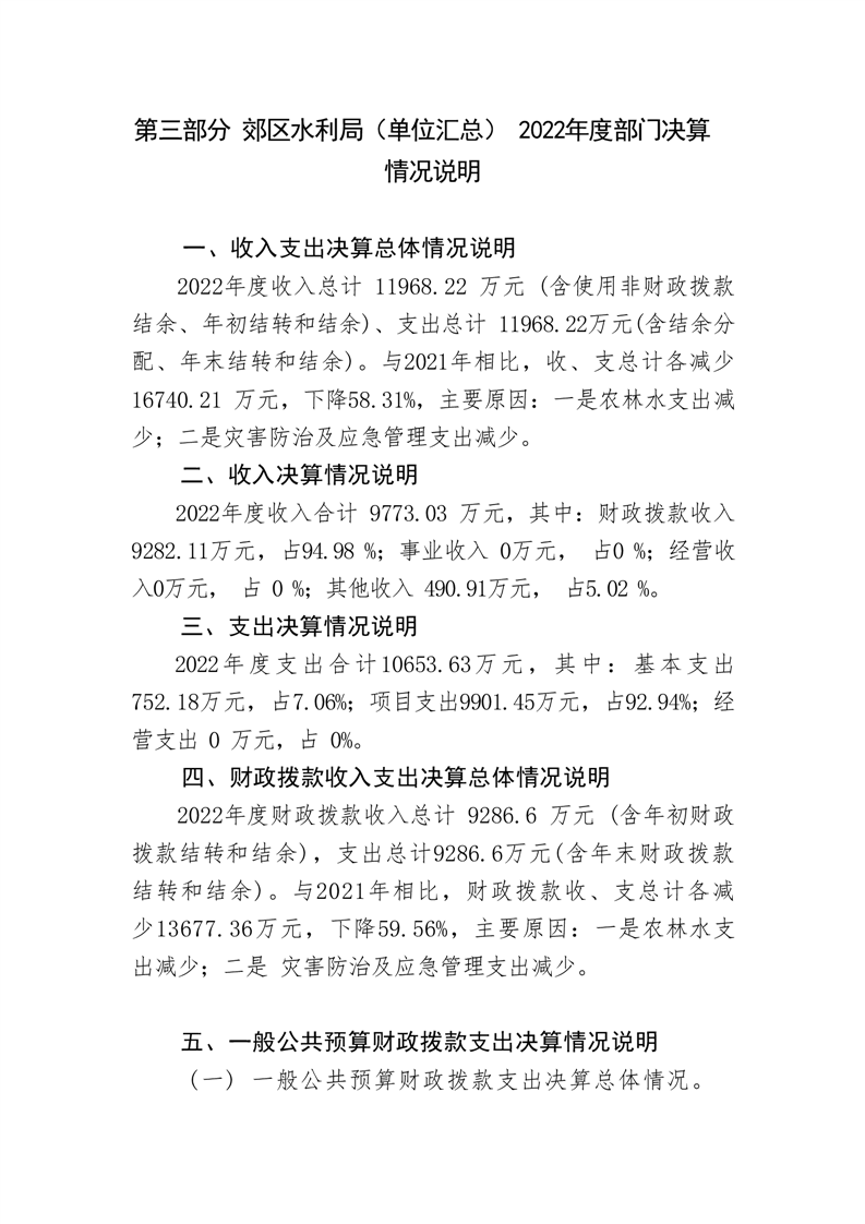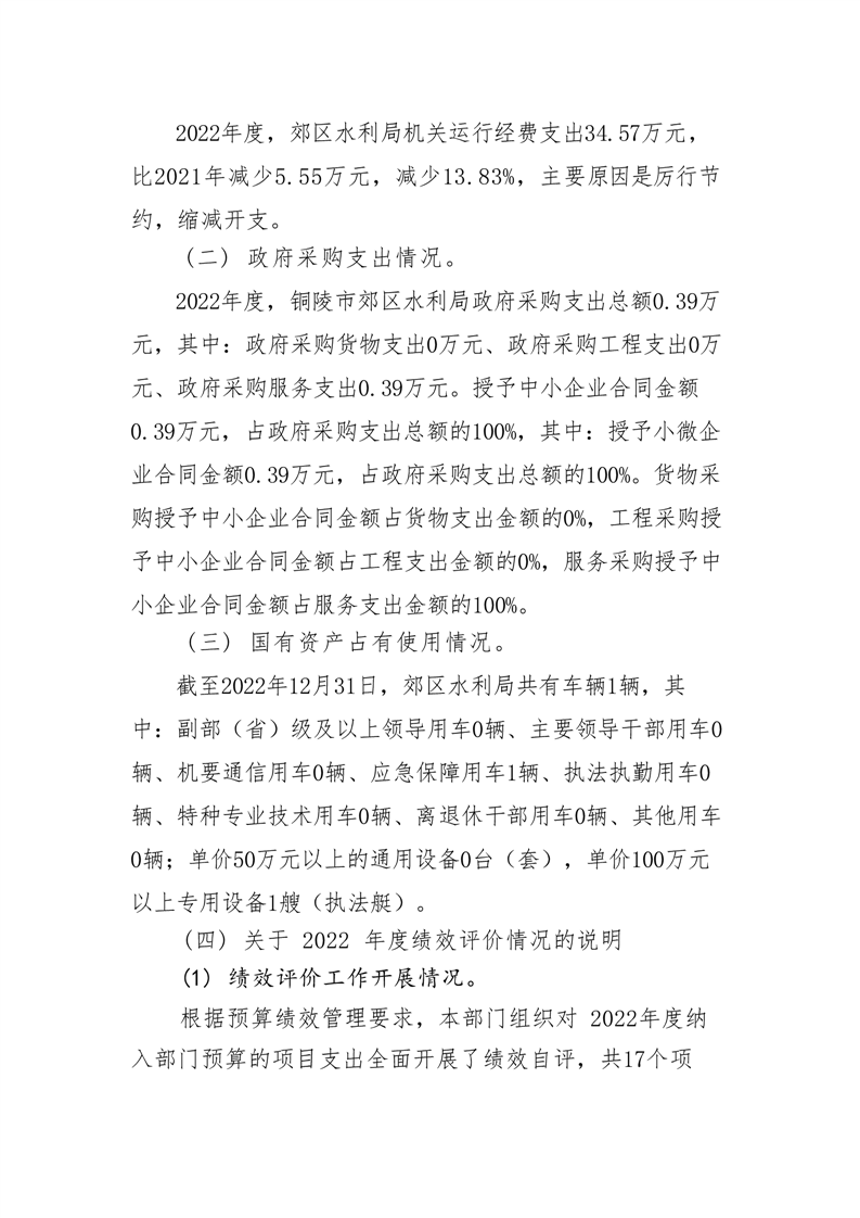铜陵市郊区水利局(单位汇总)2022年度决算公开