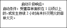在Ⅲ级响应基础上,加强应急措施:①各副指挥长及包保乡镇的区级领导赶赴火场现场指导火灾扑救工作,区森防指主要领导坐阵应急指挥中心指挥。 ②区森防指办及时调度火灾情况、分析火情发展态势、研究火灾扑救措施。 ③区森防指办会同有关部门和专家组成工作组赶赴火场,指导、协调火灾扑救工作,及时向森防指报告应急救援情况。④出动第二梯队扑火力量赶赴现场进行火灾扑救,属地乡镇向导组做好接应。 ⑤区森防指成员单位进入待命状态,准备应急增援工作。 ⑥区森防指办通知第三梯队进入待命状态,做好扑火准备。 |