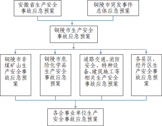 本预案为铜陵市生产安全事故应急预案,与非煤矿山、危险化学品、道路交通、消防安全、特种设备、建设工程等相关专项应急预案、县区生产安全事故应急预案、各企事业单位生产安全事故应急预案等共同组成应急预案体系。
