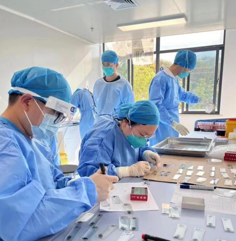现场捕鼠工作采用夹夜法,当日傍晚沿有螺环境或钉螺孳生可疑环境鼠类经常活动区域布放鼠夹,次日凌晨回收,统计鼠夹回收率和野鼠捕获率,判定鼠种,并对所有捕获野鼠进行定位,装置于生物密封袋,统一运送至市疾控网络实验室进行检测。