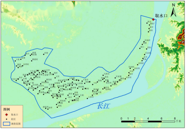 本次评估调查范围以取水点为圆心,半径为12.6km的圆(一级保护区0.5km+二级保护区2.5km+准保护区1km+风险防护范围8.6km)与陆域相交范围。