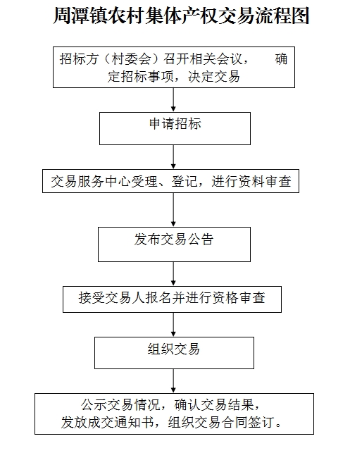 第六条 周潭镇农村集体产权交易服务中心(以下简称交易中心)是农村集体资产资源交易工作的具体办事机构,主要负责全镇农村集体资产资源交易活动的组织、审核、管理。具体工作包括: